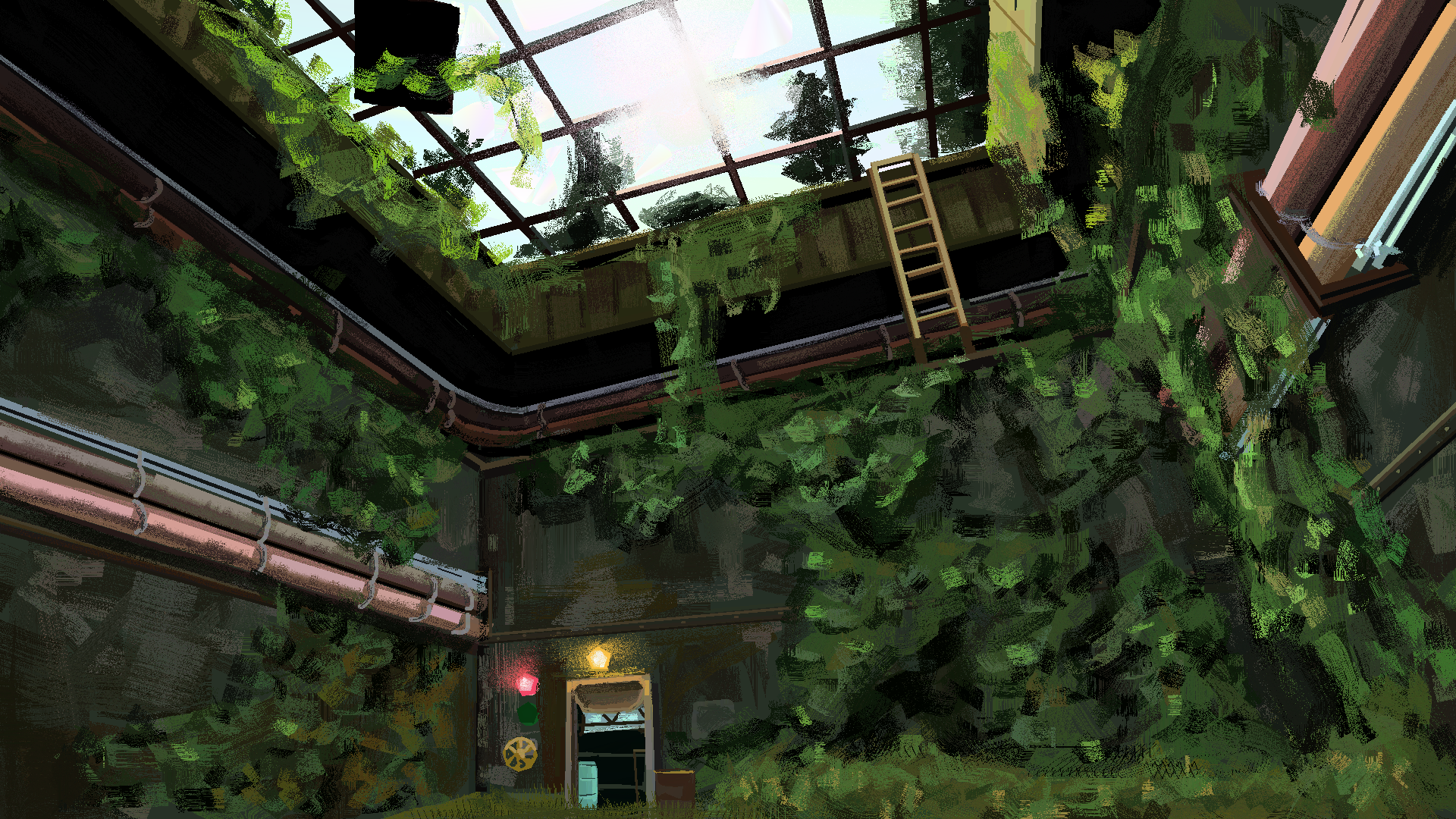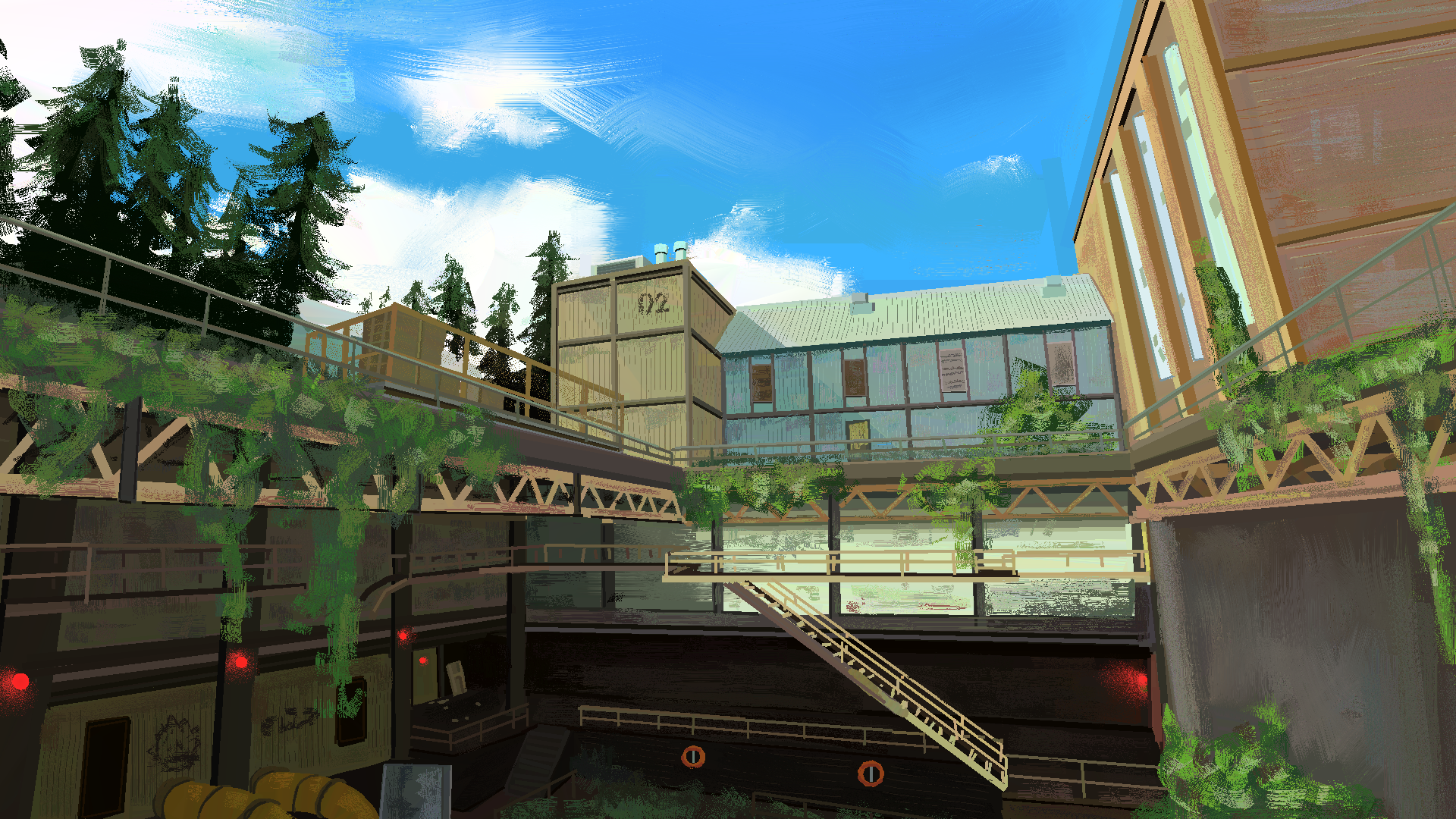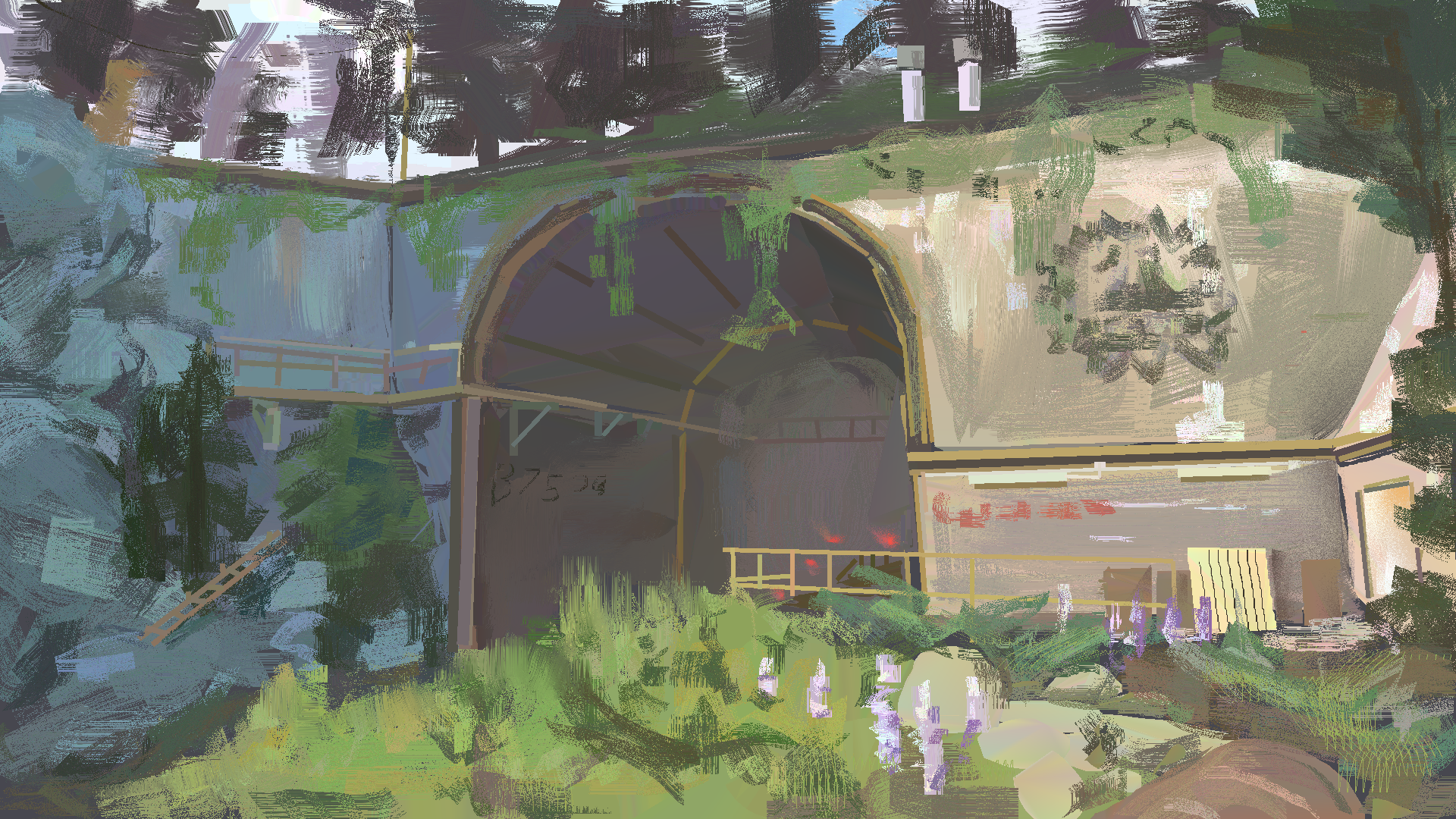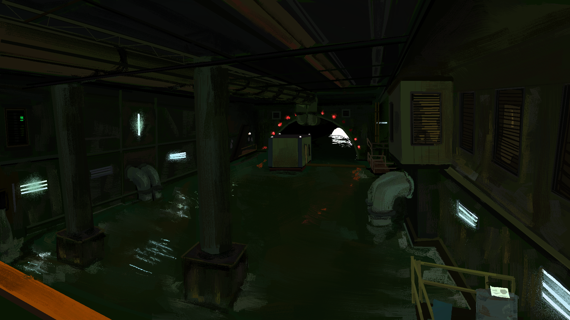 Digital studies of locations throughout the video game “INFRA”, done in HEAVYPAINT, a deliberately limited painting app.