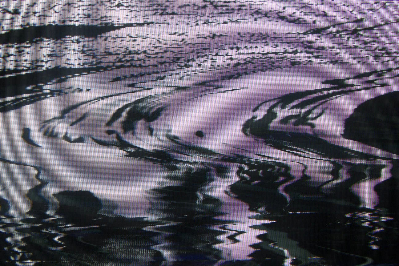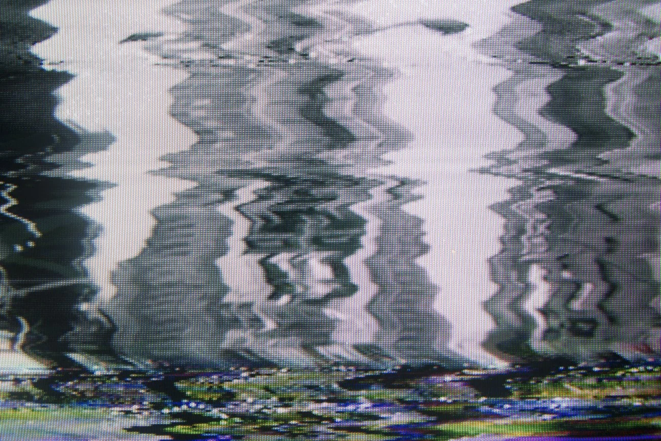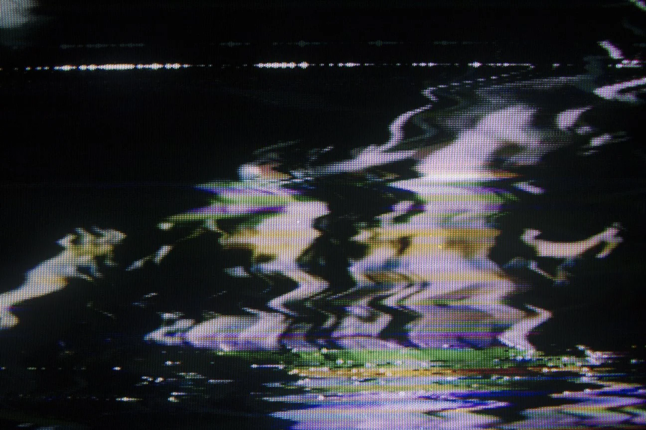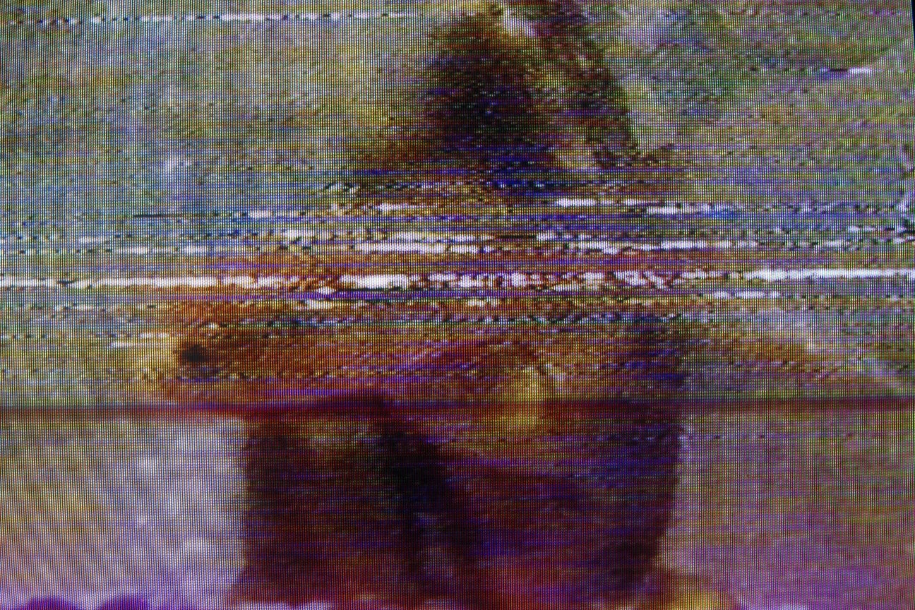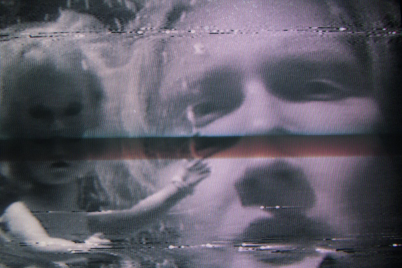 A series of photographs taken of a VCR feed of a top hit music video tape, just as the VCR is dropped on a concrete floor.