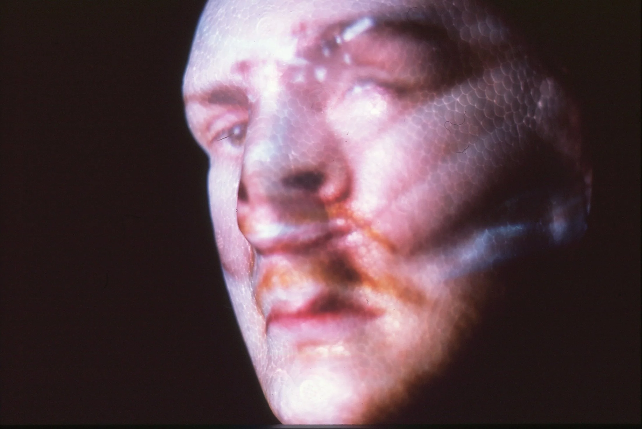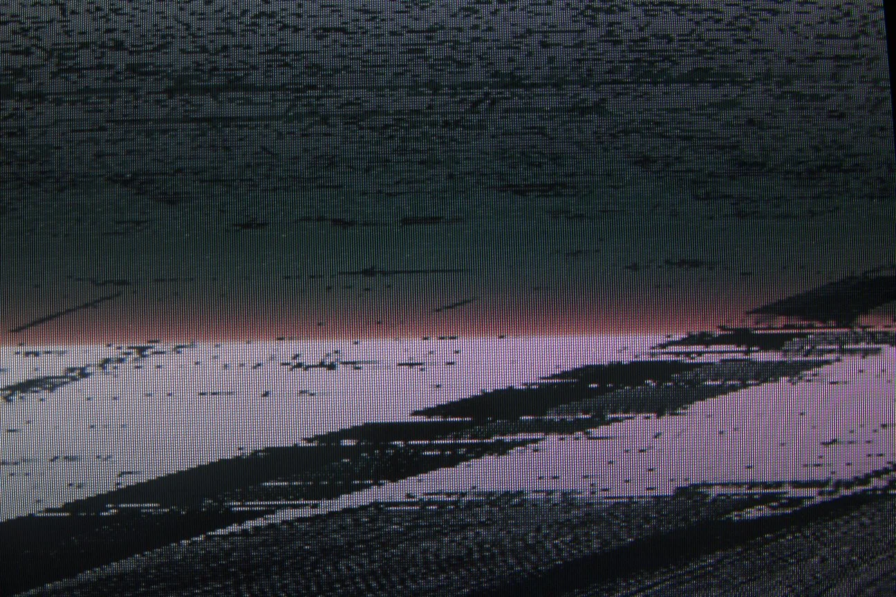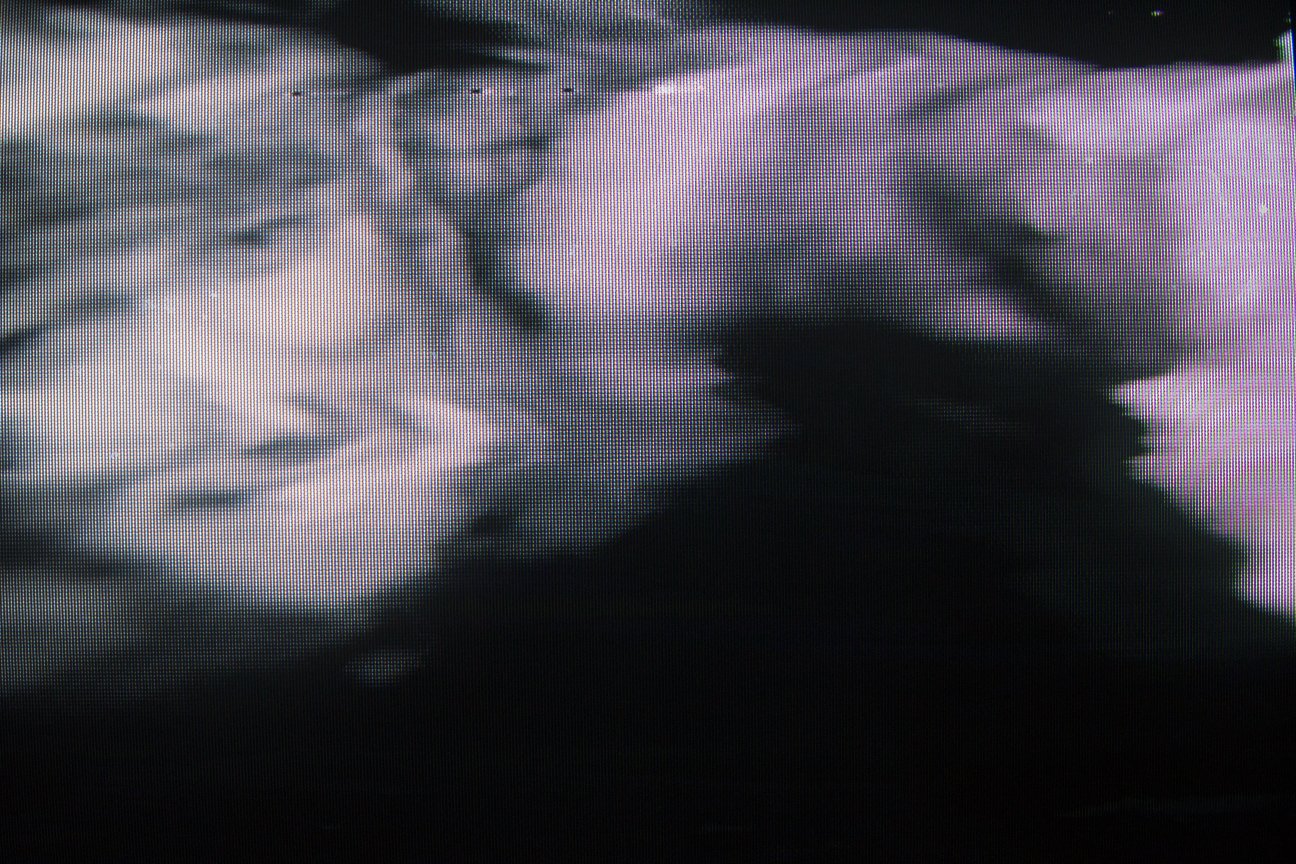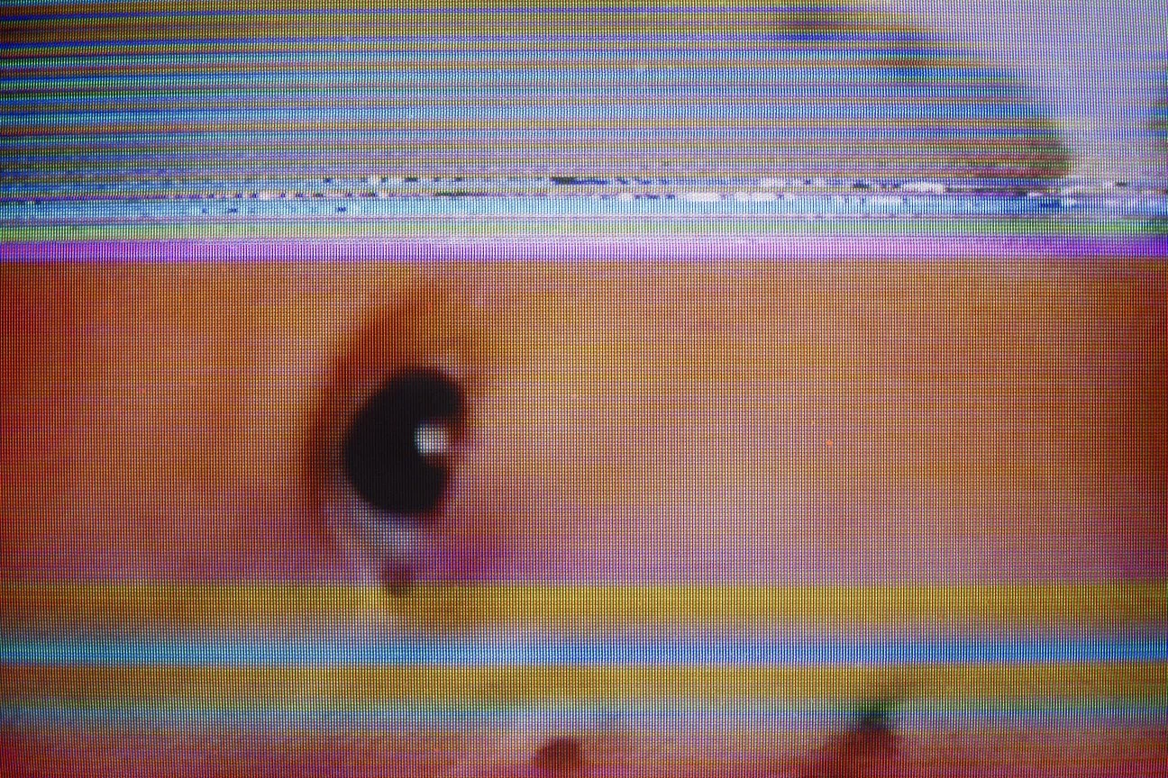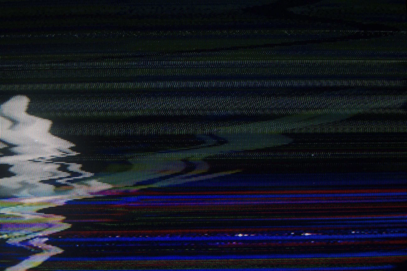 A series of photographs taken of a VCR feed of a top hit music video tape, just as the VCR is dropped on a concrete floor.
